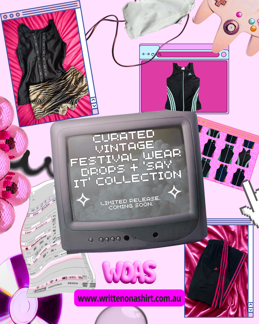Written On A Shirt (WOAS) is a one-woman vintage and limited-release label born from festival culture and built on individuality. Each drop is small, intentional, and impossible to repeat : from rare vintage finds to reworked pieces and limited in-house designs.